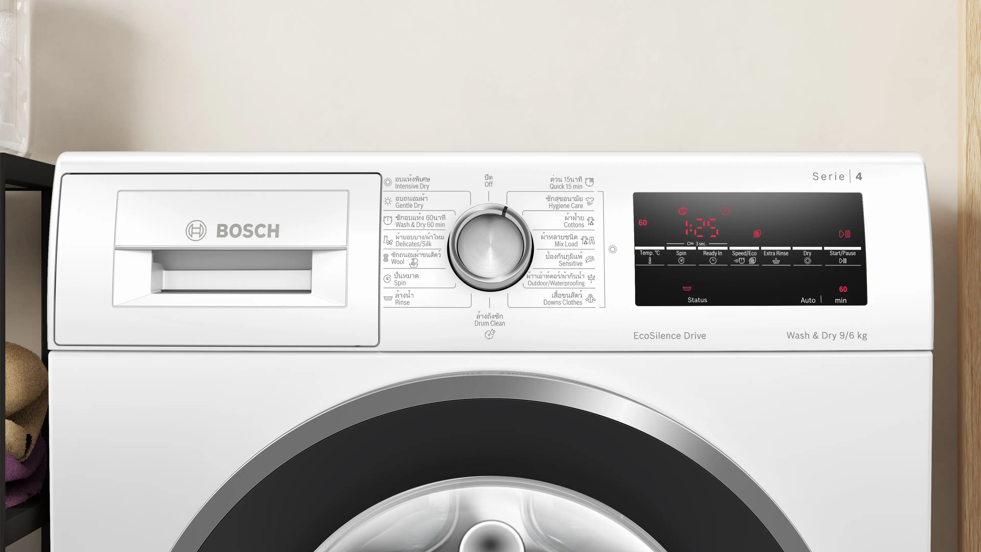 Wash & Dry: wash and dry efficiently up to 6 kg all in one go or just washing up to 9 kg.