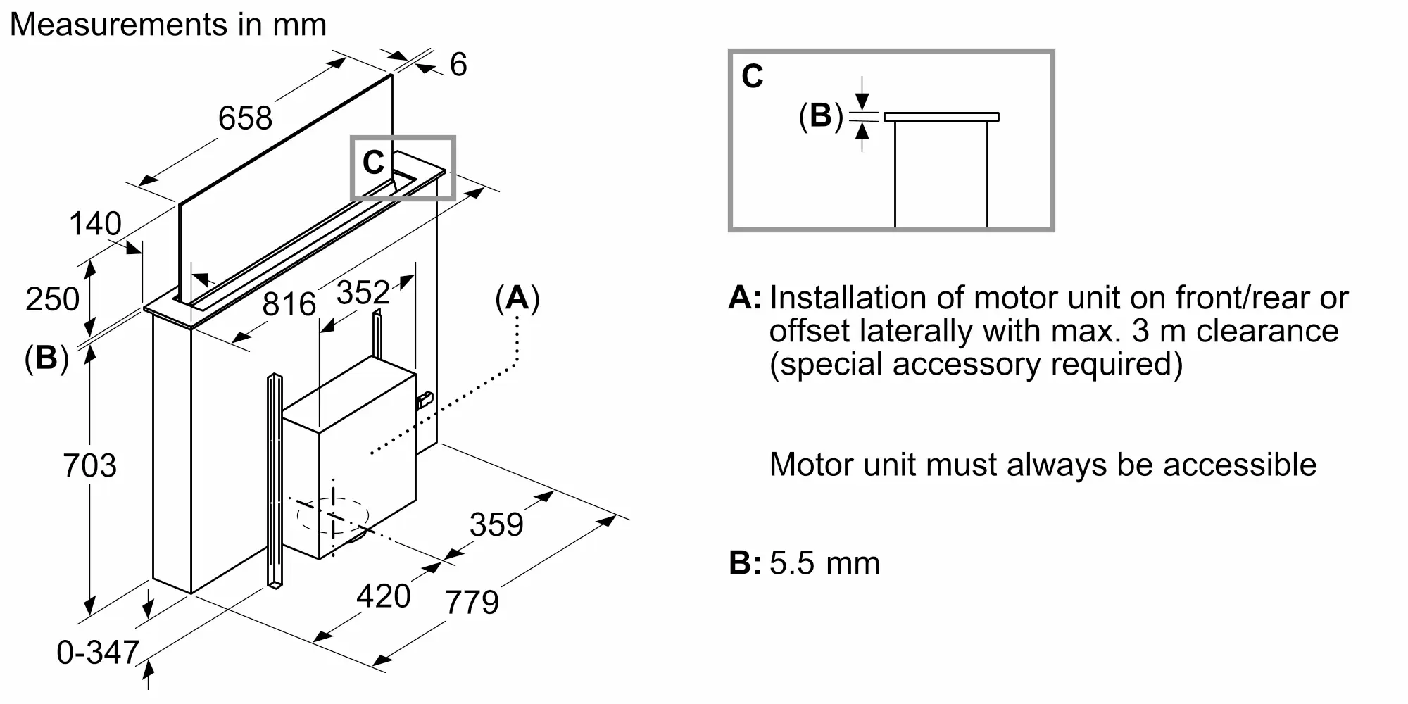 Series 8 downdraft hood 80 cm clear glass, BlackDDW88MM66