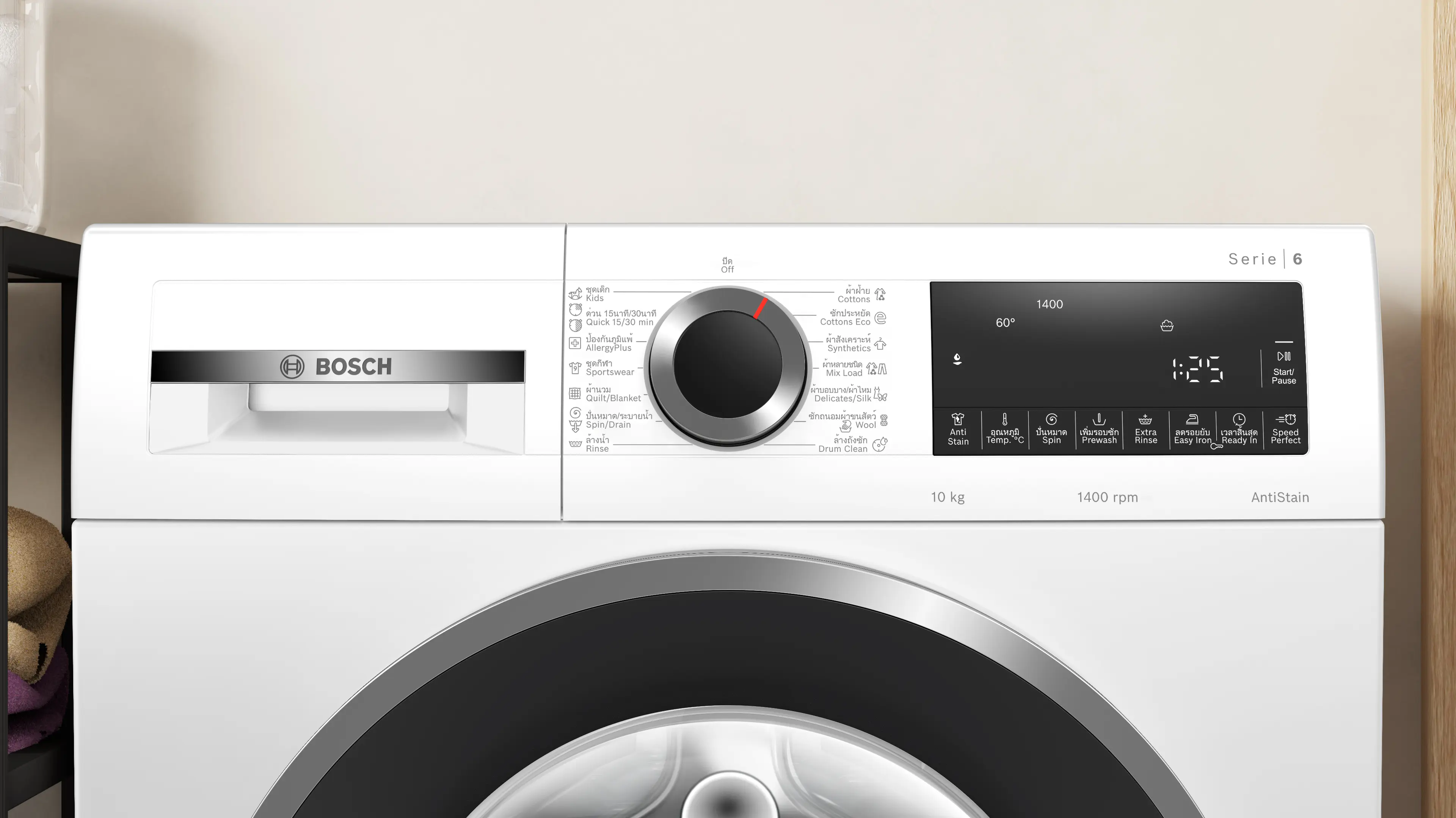 ซีรี่ 6 เครื่องซักผ้าฝาหน้า 10 kg 1400 รอบต่อนาทีWGG45400TH